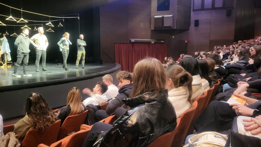 I ove godine učenici Srednje škole Čakovec su zajedno sa profesorima i stručnim suradnicima sudjelovali na festivalu Centra za kulturu Čakovec pod nazivom Ne-nasilje koji se održao od 16. do 20. veljače 2026. godine. Svaku od pet predstava (“5. dječaka si.”, “Rođenje adolescenta”, “Cure”, “Drvljaci” i “Ja sam…”) popratila je tribina na kojoj su sudjelovali glumci i stručnjaci iz raznih ustanova kao što je Obiteljski centar, Hrvatski zavod za socijalni rad i druge. Predstave su tematizirale neku vrstu nasilja ili više njih, kao što su vršnjačko nasilje, emocionani pritisak i mentalno zdravlje mladih. S obzirom da u doba digitalnih medija sve više svjedočimo govorima mržnje i širenju dezinformacija s ciljem degradiranja osoba, proširuje se pojam nasilja koje je ponekad jako suptilno da ga je teško prepoznati, ali jednako ostavlja posljedice. Predstave i tribine su bile polazna točka našim ambasadorima za raspravu o načinima poticanja mladih na aktivnije djelovanje u životu zajednice i osvješćivanje problema nasilja kako bi ih spriječili ili umanjili.