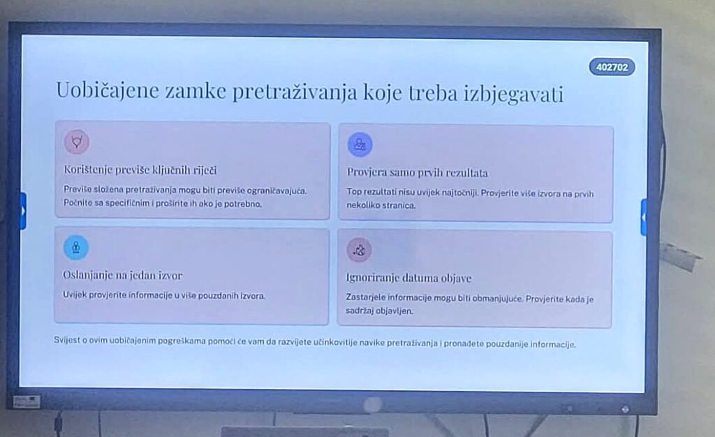 Odgovorno i sigurno korištenje interneta i prepoznavanje dezinformacija su neke od gorućih tema o kojima raspravlja i EU, zato smo se uključili u edukacije koje provodi Mediactive te održali dvije radionice, nakon kojih je uslijedila rasprava na temu.